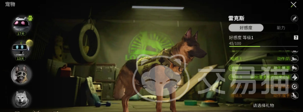 说到宠物,游戏里一共有五只,价格各不相同。首先来说说雷克斯。它是我们的初始宠物,对于新手玩家来说,意义可大了。雷克斯一开始就有三格保险箱空间,这在游戏初期,仓库里什么都没有的时候,简直就是个宝贝。玩家可以把战场上找到的高价值物品放进去,稳稳地赚取第一桶金。不过雷克斯毕竟是新手宠物,没有额外的技能,升级之后也只是增加一些动作和装扮。它的保险箱最大也只能升到2x2,巡回能力也要12小时,所以雷克斯更适合新手期过渡使用。