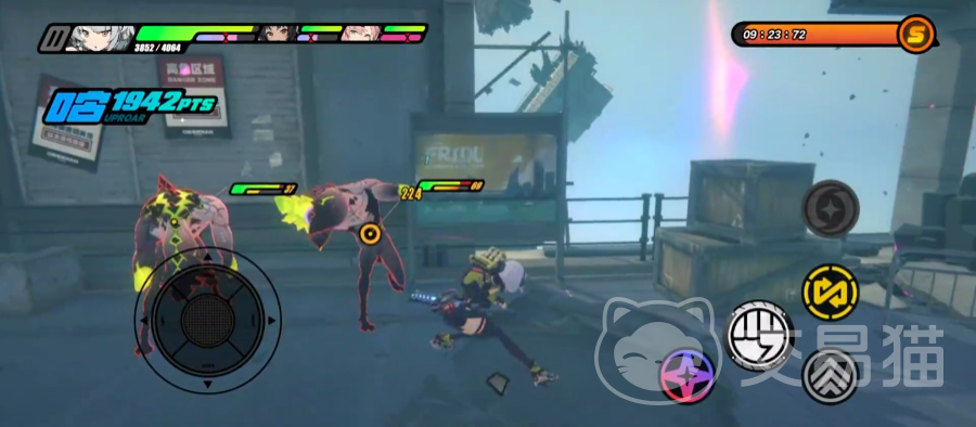 其次是能量和特殊技能,进行战斗的时候,普攻可以累积动能,还能够破坏场景当中的存在的物品,并且将能量方块释放,收集满之后能进一步增加角色动能,左上方显示的是三个队友的生命以及能量值,对于特殊技能的释放有助益,这些特殊技一般也有强力的打击效果,能对敌人造成巨额伤害。