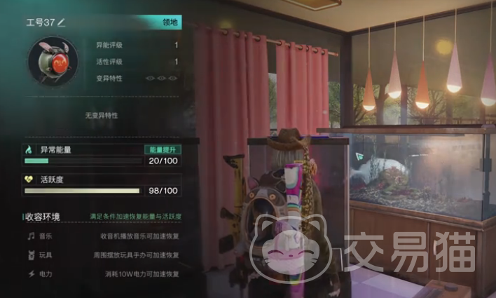 得到器之后,我们要怎么使用它呢?很简单只需要把它放到输入仓里,它就可以开始恢复能量了。如果能量不足,我们还可以通过提升活跃度来增加它的异常能量。还有一个小技巧,就是在收容仓附近放一些音乐手办,这是游戏当中比较常见的一种手法,这样可以提高50%的异常能量回复速度,这种速度在游戏里面是比较极致的。