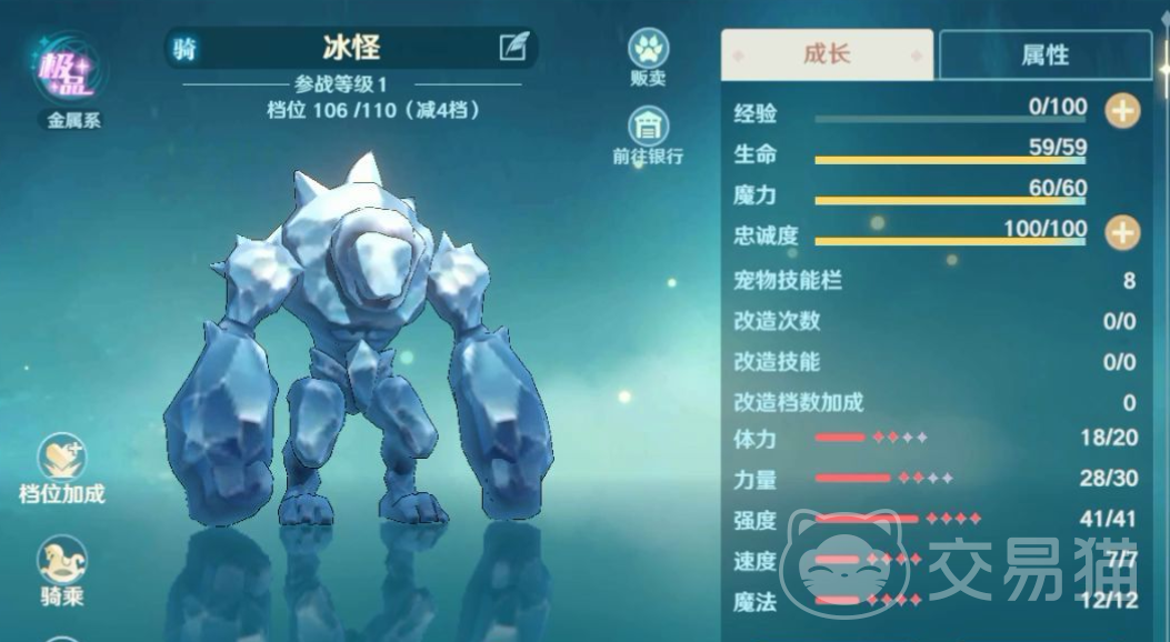 光看冰怪的技能的话,冰怪可以当前排,当坦克使用,它自身的伤害能力以及防御能力可以在保护自己的前提下打出更大的伤害,但是需要注意的是冰怪的魔法值和血量比较少,在战斗中还是需要注意。技能描述来看,冰怪适合作为前排肉盾使用,其高防御和自我增益技能使其能够在战斗中承受大量伤害,同时通过震地重锤和刚拳技能对敌人造成反击。尽管冰怪的血量和魔法值相对较少,但其极高的防御力和特定的技能使其成为一个适合特定战术需求的宠物。