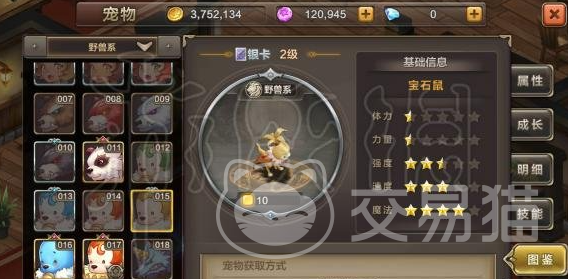 宝石鼠是防魔宠,宝石鼠主要攻击力是物理攻击,在战斗中还可以魔法攻击加持,这样给战斗又带来了多一层的胜算。宝石鼠的初期技能是普通攻击,单风和强风,这两个技能都可以快速有效的伤害到敌方宠物。