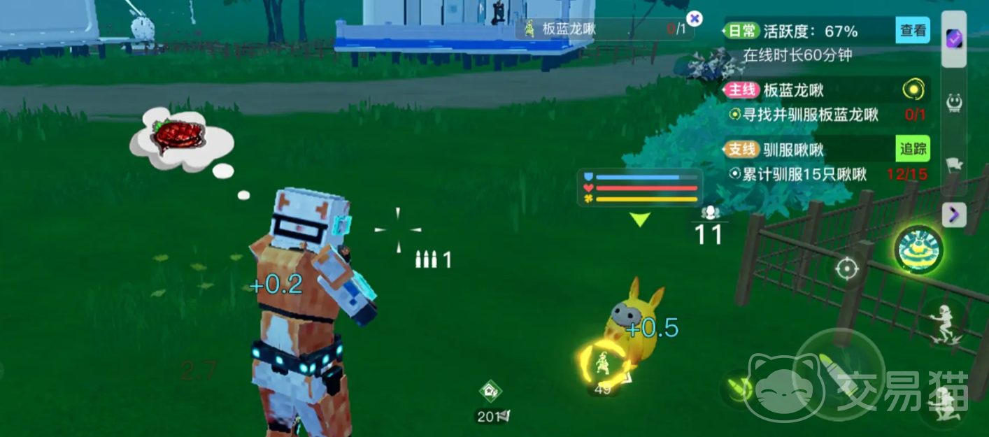 等我们等级渐渐变高,组装台内还会陆续出现蓝色或橙色品质的武器图纸,届时玩家就可以利用这些图纸制作更高级的武器,在打怪的时候建议先打一些等级比较低的小怪试试水,比方说渡渡鸟这种,在击败后不仅能得到经验值还能获取肉类,我们可以将这些肉类制作成菜肴,帮助恢复一定的饱食度。
