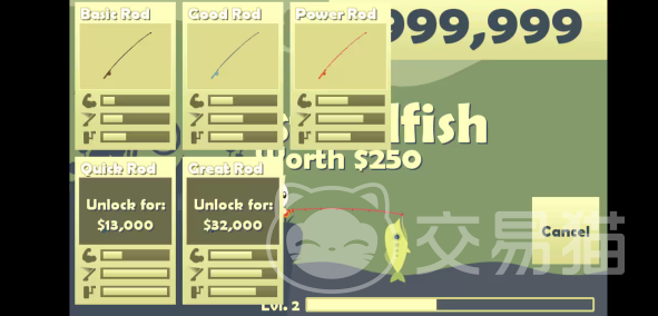 鱼饵问题解决了,我们还要解决鱼竿,钓鲨鱼需要高级鱼竿,我们在五级的时候会解锁商店,里面有鱼竿卖,我们将低级的全部买完就会自动解锁高级的,我们再购买高级的即可。