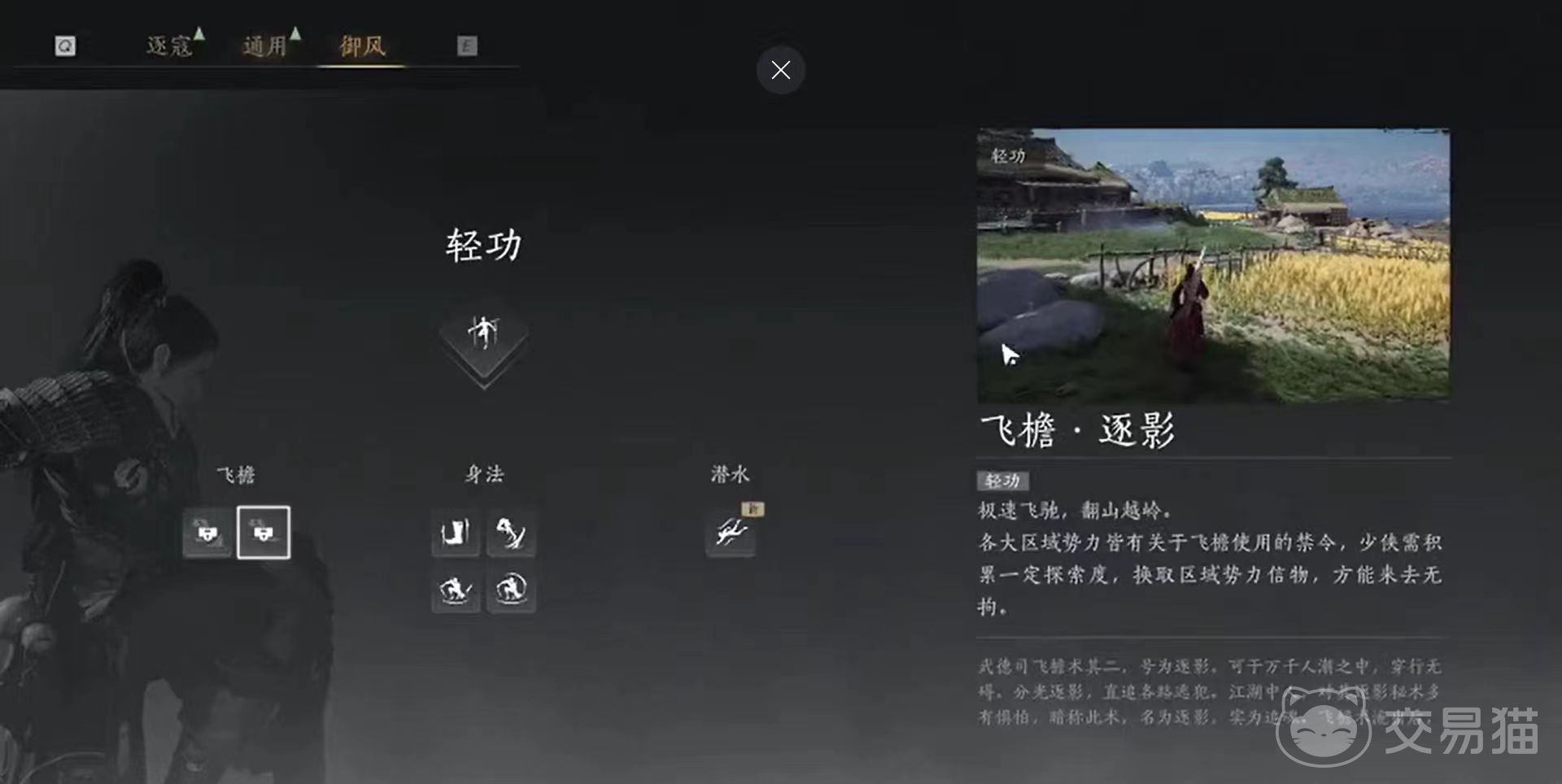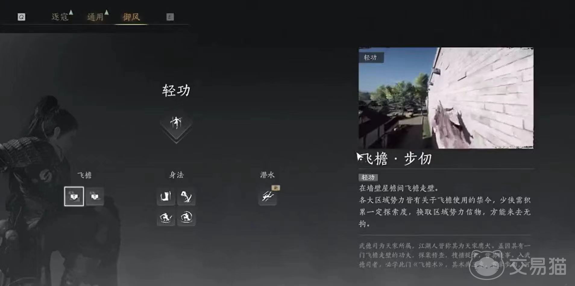 其实是并不复杂的,玩家只要寻找到这个叫做齐声的技能教学的导师,通过提交奇珍的方式,就能够将一个个不同的技能点亮。在众多的技能之中,这两项飞檐能力就摆放在里面,玩家可以逐个去点开查看它们的需求。尽管寻找奇珍有些麻烦,但是为了飞檐技能还是值得去努力一番的。