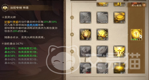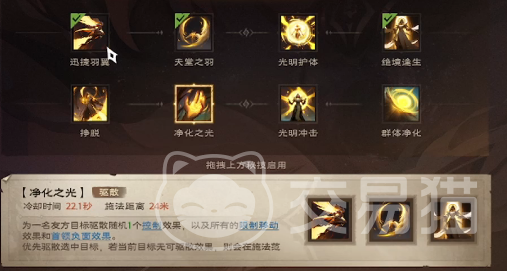 在神恩流派中,我们主要关注的是治疗和辅助能力。天赋加点应着重于提高治疗效果和减少治疗间隔。其中分为祈福和神谕两派。祈福流派,以瞬发治疗为特点,天赋应着重于提高光明波动的治疗效果和刷新速度。神谕流派,以长时间读条为特点,单次治疗量可观。天赋应着重于提高圣灵祝福期间的瞬发神谕技能的治疗量。