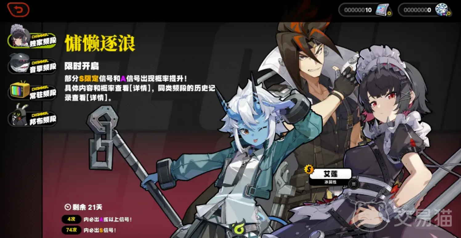 角色卡池有常驻频段,独家频段,颁布频段和音频频段。
