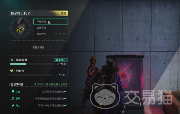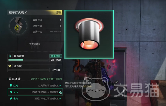 一旦玩家成功收容了“核子打火机”,玩家就可以将它放入玩家的收容仓中。在那里它不仅可以回复玩家的能量,还可以通过能量兑换来提升玩家的活跃度,帮助玩家更好地享受游戏。通过能量的等量兑换,帮助玩家在游戏当中更好的去玩。此外如果玩家在收容仓附近放置一些红光音乐电力,还可以进一步提升能量的回复速度,速度直接飙升,让玩家的游戏体验更加顺畅。
