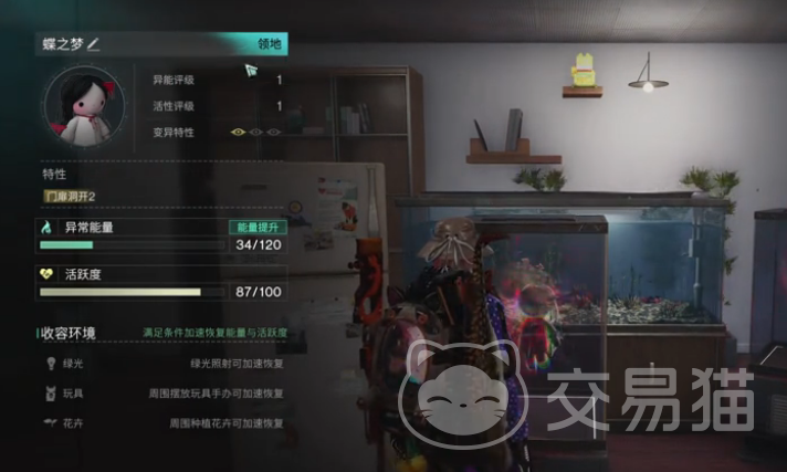 成功收容“蝶之梦”后,我们就可以将它放在收容仓中,让它继续为我们服务了。它不仅可以帮助我们回复能量,还可以通过能量提升来兑换活跃度。如果玩家想让它更加高效地工作,还可以在附近放置一些绿光玩具和花卉,这些都能提高它的能量回复速度,让这个道具可以更好的为玩家服务到极致。