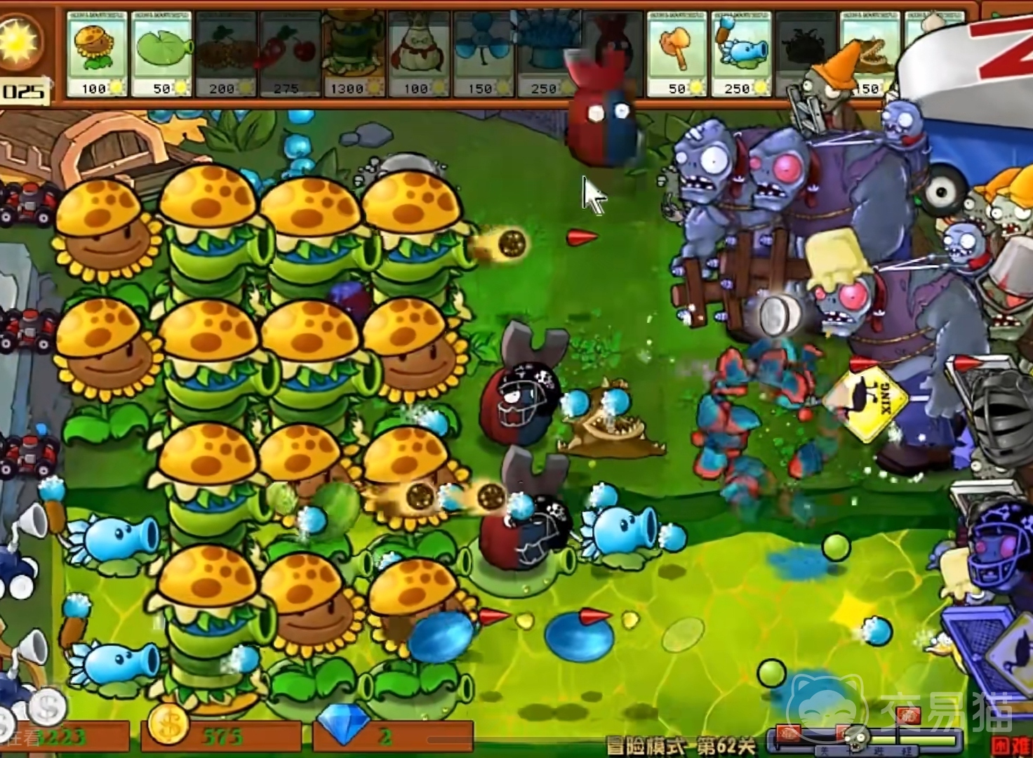 所以如果遇到长车僵尸关卡的话,大家就选用大嘴花或者黄油忧郁菇宝宝吧。这两种都是非常好用的床车僵尸克星,能够有效地形成防御线,阻止侵扰,对床车僵尸形成克制,对僵尸进行减速输出。
