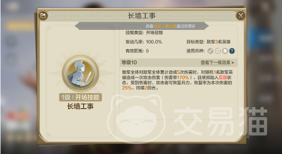 还可以仔细的分析一下伤害构成,长墙工事总共是触发34次,而这34次不仅是造成伤害的次数,更加是队伍英雄攻击的次数,一共是触发了8次,会造成将近40次的伤害。从这里就可以看到会形成一个羁绊,大约是40次总伤害就能造成4次攻势触发,这一个提升数值相对而言还是比较可观的。