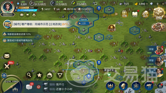 游戏中最多可以建立四座分城,分城的资源发展不需要和主城一样均衡提升,可以根据自己的缺口有意识的进行弥补。