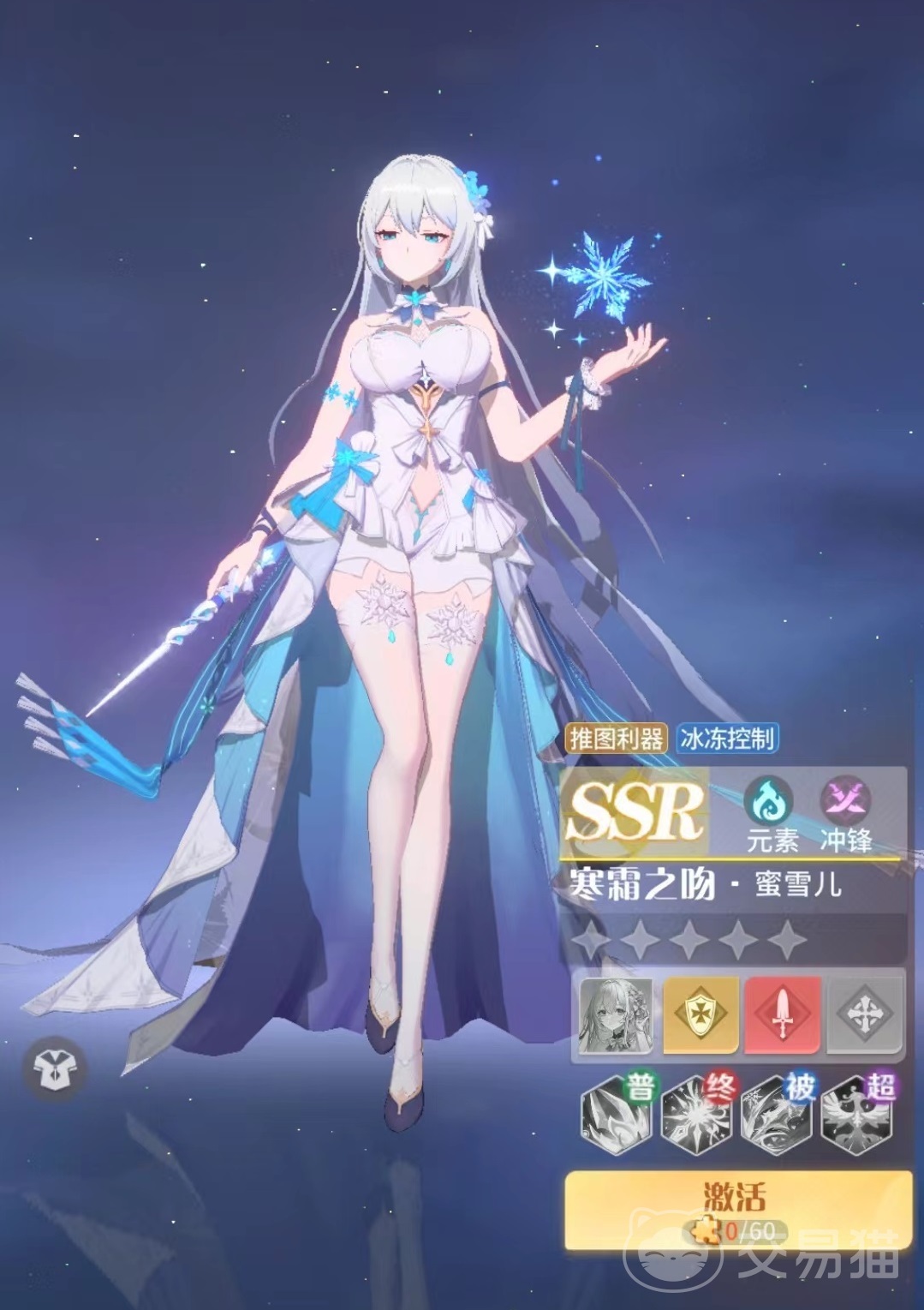 寒霜之吻蜜雪儿可以说是目前游戏中非常热门的人物,也是官方主推的人选,非常擅长放在后排输出伤害。无论是在前期用自己技能带来的群体伤害去快速推图,还是在pk时发挥出控制优势,让对方难以输出,都是这名角色的特点。而且本身也是最顶尖的SSR人物,属性成长方面也是一流,完全具有成为核心的潜力,同时也是现在很多阵容搭配中的绝对核心。