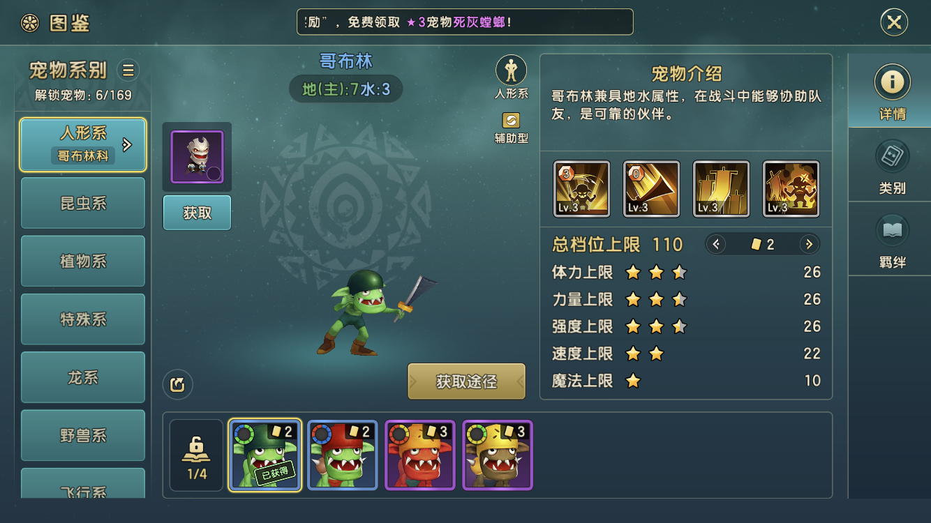 用图鉴卡来直接封印捕获宠物只能用于蓝色品质的宠物,一旦品质高于蓝色品质的话就会有不同的图鉴卡要求,比如说金色品质的宠物需要80张金色宠物图鉴卡才能获得。想要获得王宠级别的宠物的话不仅需要氪金获得图鉴卡还需要完成宠物对抗等副本来获得宠物获得道具。