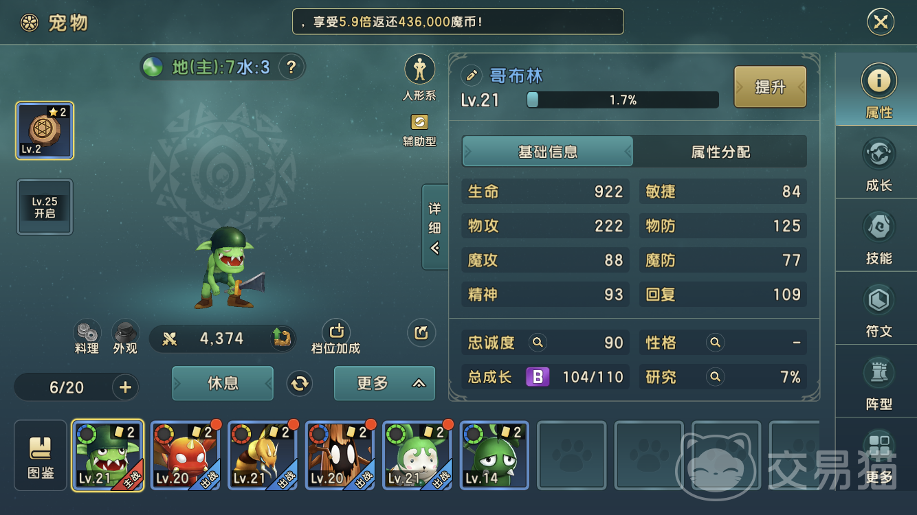 获得宠物之后就要对宠物进行培养,宠物同样也有技能和属性,玩家需要提升宠物的技能和根据他们的攻击类型来做出不同的加点,拥有多个宠物之后还能列出阵型来帮助玩家作战。