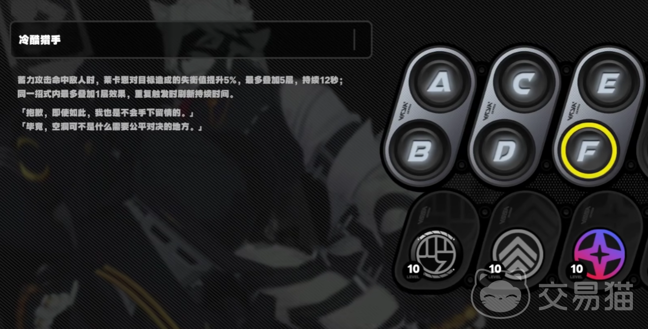 在绝区零这款游戏中,角色满命的意思就是将角色的天赋提升到了顶级,角色的天赋在技能面板上是可以看到的,上方的a到F这几个字母所代表的就是角色的天赋点,当玩家使用重复的角色卡片进行进阶的时候,就能够将角色的天赋进行提升,每激活一个天赋都能增加角色的相应附加技能点,或者是角色的属性值,有部分角色在只有达到满命状态下才能发挥出较大作用,而A级角色和S级别的角色其培养的难度是不同的,S级的角色想要满命是较为困难的,而A级角色能够轻易的达到满命的状态。