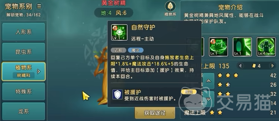 黄金树精是当前版本最容易获取的一个七级宠物,玩家们只需要通过黑暗医生布置的任务就可获取,玩家们想要培养强大的魔力宠物,就需要在加点,天赋以及技能选择上做到十分详细。黄金树精的加点方式有很多,小编推荐大家直接加全体强度的点,这样全体就会拥有高的生命值和恢复能力。主要就是能够在短时间内承担护卫的职责,全体更加抗揍,还会提升精神效果,不惧怕魔法伤害。