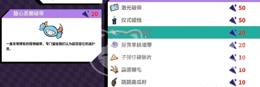 在咖啡馆的购买窗口中,玩家可以看到各种不同类型的磁带和特殊道具。比如有激光磁带、仪式蜡烛磁带、甜心恶魔磁带和报丧女妖磁带等等。每一种磁带都有其独特的功能和效果,比如激光磁带就有百分百成功录制的能力,这对于想要收集更多妖怪技能的玩家来说是非常有用的。