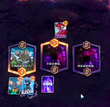 在游戏当中每一个回合持续时间为三分钟左右,而且每局对战拥有六个回合,玩家至多可以思考30秒左右排桌上有三组区域分别代表三个不同的战场,两名玩家至多带上12张卡牌,通过安排出牌的顺序和出场的时间来击败对方。对战结束后,通过结算双方区域内的战力数字情况来进行最终的判定。玩家在游戏的过程当中需要结合三个战场的不同地形审时夺势的做好出牌顺序的选择,还需要适当的去猜测对手的战力情况,通过他们以出的卡牌来大概推算出己方的最终出牌顺序。