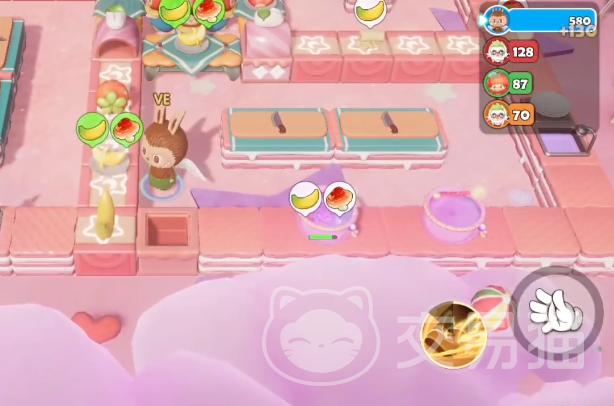 等食物加工完成之后,玩家就可以装盘上菜,在限定的时间内烹饪的菜品越多,能获得的分数也就越高,倒计时结束之前分数最高的玩家能获得游戏的胜利,这一关操作起来是比较简单的,主要考验的就是玩家的速度,以及对这些食材搭配的熟悉程度,游戏里大部分食材都是两种食物进行搭配组合,如果有三种食物搭配的玩家需要尽快烹饪完成,因为这能获得更高的分数。