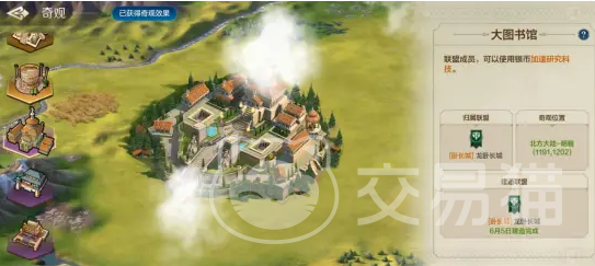 “大图书馆”这就是一个联盟建筑都是在对应的范围内进行,每一个联盟都可以创建奇观,只能够创建一种奇观。通过创建奇观的方式就能获得累积的积分,一旦积分符合要求就能迅速的完工。没有完成者还可以将部分的建材退还,而在完成之后则需要对应的时间来冷却。