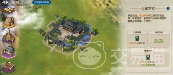 首先,百家学宫可以为玩家提供资源增益,不过需要联盟的成员完成科技的研发,为百家学宫进行能量的积累,能量积满的时候,玩家就可以从三个资源增益选项中任选其中一个进行激活。