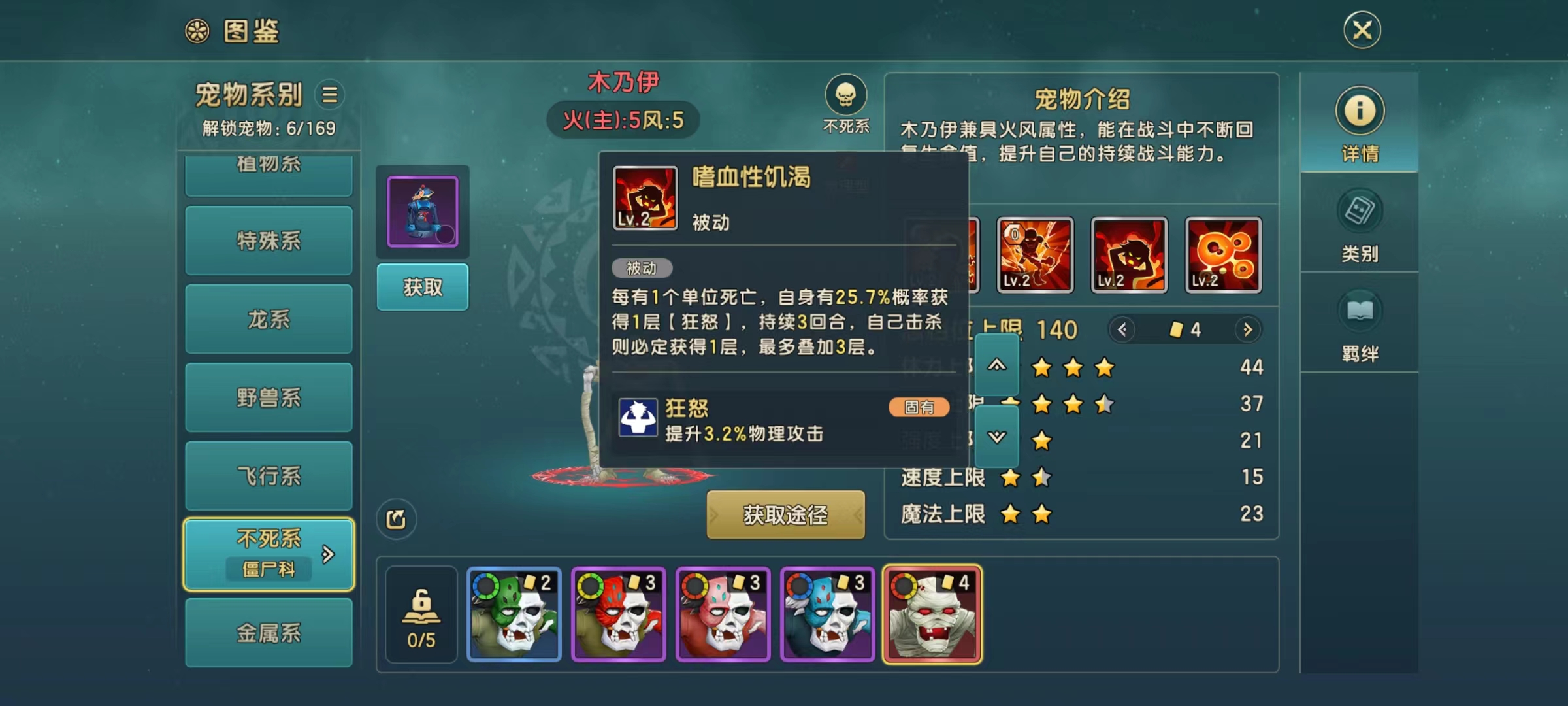 还有一个被动嗜血性饥渴,每有一个单位阵亡,自身都有几率获得一层狂怒状态,持续三回合,如果由木乃伊来击杀,则必定获得一层,最多叠加到三层。技能达到最高级时,每层狂怒都能提升4.8%物理攻击,虽然不高,但是叠加到最后如果只剩木乃伊一人,那么就会更恐怖了,而且伊布乃伊的特点完全可以生存到最后。