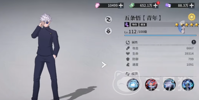 最后,如果玩家缺少物理伤害和爆发的角色,可以选择五条悟青年,五条悟青年能够发动无量空处对敌人造成aoe伤害,并且五条悟的专用招式“芘”,还能够秒杀单体boss,但是五条悟较为难以培养,在游戏的前期可能会比较艰难。