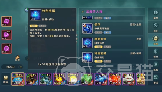 连击技能就是增加蓝魔吓人箱的攻击速度,可以在短时间内造成快速的连续打击,同时还会增加一定的攻击次数,造成更多的有效伤害。宝物技能在争夺宝物获得额外增益时会有很好的优势,蓝魔吓人箱可以利用宝物获得更好的技能效果。惊吓技能是一种对抗伤害技能,可以直接对敌人在成真实伤害冲击,也能正面对抗敌人打好的伤害效果。阳炎和偷窃技能能提供额外的魔法攻击能力和从敌人身上偷窃物品的能力。