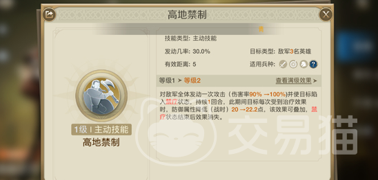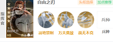当然仅仅依靠出色的初始属性是不够的,自由之刃的强大还体现在他的自带技能“高地禁制”上。这个技能能当成伤害暴击力最高的技能去使用,足足达到180左右,这在游戏中是相当高的伤害输出了。这个技能在玩家进行发动时可造成敌方禁止治疗的状态,而且就算敌方将兵力恢复了,它的属性也不会提升太高,甚至在战斗时会实现降低的情况。