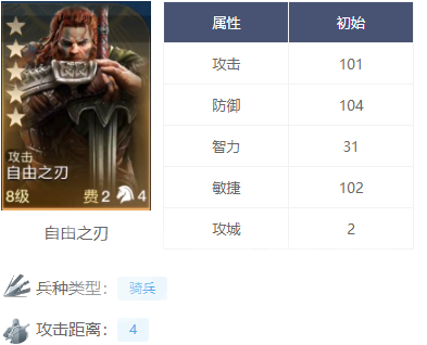 首先从初始属性上来看,自由之刃无疑是一位全能型的角色。他的攻击防御和敏捷三项属性全部都实现破百,这在游戏中是相当罕见的。101的攻击是一个比较可观的数字,在面对敌人时造成的伤害是巨大的。104的防御会让角色的生存能力变得更好,面对多个敌人攻击也不在话下。而102的敏捷就是专门为灵活性而制定的,在进攻和防守多方面都能达到游刃有余的地步。