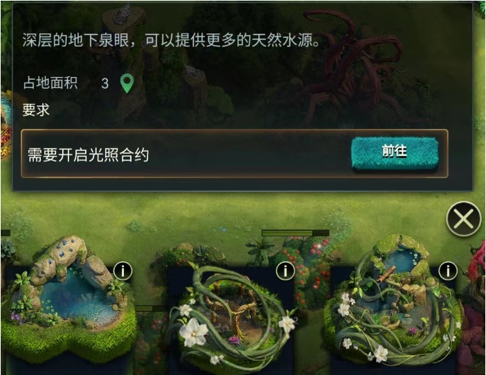 另外湿土,沙子水当中,水是比较特殊的,该资源的生产建筑很多,比如深层地下泉,还有露水收集地,还有蓄水池,深层地下泉这个建筑可以给到更多的天然水源,露水收集地供应着领地的发展需求,可以使用采集猴来收集路兽,然后存放在蓄水池里面。