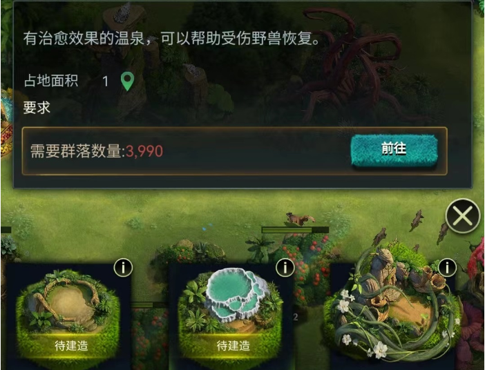 另外还有和战斗训练有关的,比如野兽训练场,可以用来对野兽进行日常训练,训练场物资充沛的话,还能大幅度的提升着急野兽的速度,治愈温泉这个建筑,可以帮助受伤的野兽进行治疗;行军集结地,给野兽提供了集结的场所。