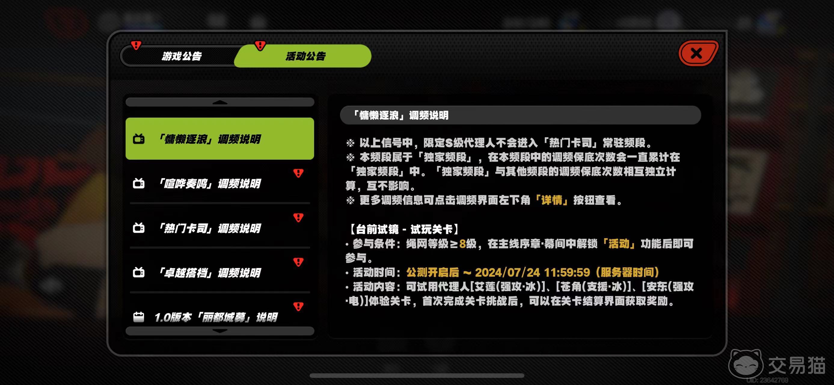 第二个福利则是登录即送30抽,玩家们只要登录游戏,完成相关的一些活动,就可以累计获得100抽角色卷,80抽邦布卷,而且还有非常稀有的A级代理人,登录游戏后,需要小伙伴们完成【慵懒逐浪】,这个活动可以免费获得限定S级艾连合A级代理人【苍角】【安东】,这三个都是非常强大的伙伴!