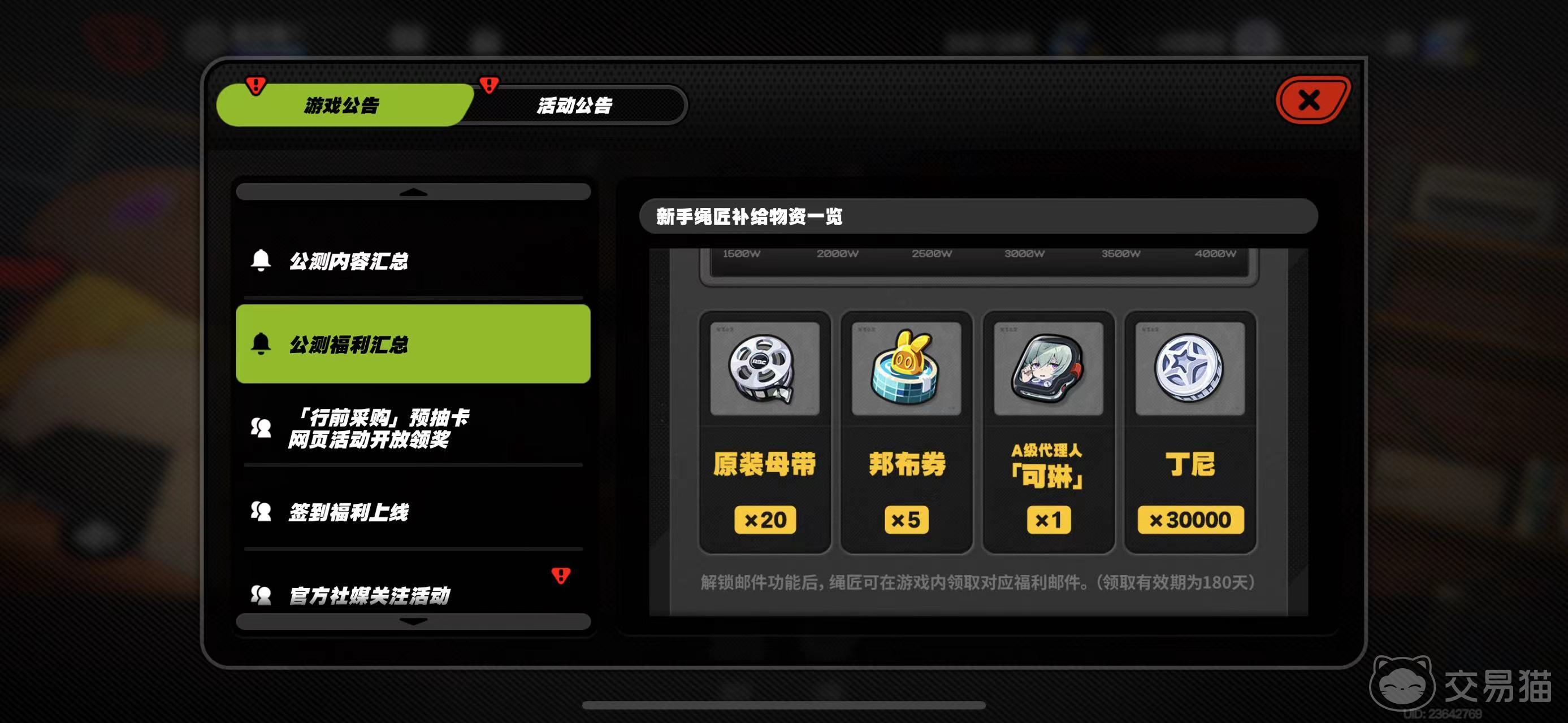 第三个,绝区零的预约奖励领取,登录游戏就可以领取到【原装母带】20个,5个邦布以及一个A级代理人【可琳】和丁尼,新手绳匠需要玩家们在游戏当中完成主线的推进,通过完成挑战可以获得原装母带,加密母带,菲林以及邦布卷!