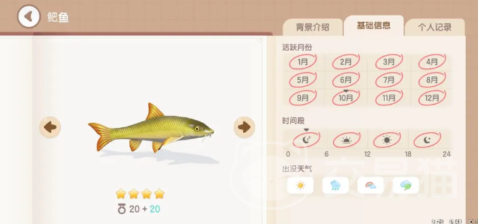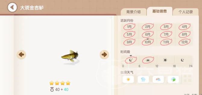 想获取该鱼的玩家需要注意,虽然这条鱼任何时间都有该概率钓到,但是它只在幸运天出没,玩家需注意游戏内当天天气,这样才有机会获得该鱼。