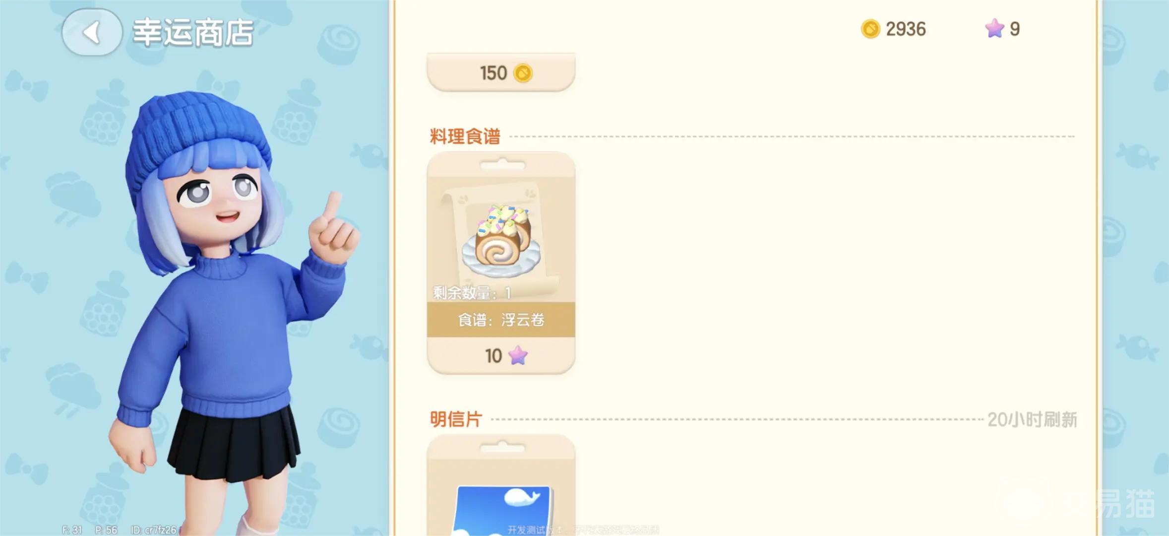 3、在发现朵朵后,靠近她便可与其交互,选择打开幸运商店,玩家便可通过消耗10个许愿星来购买浮云卷的食谱。