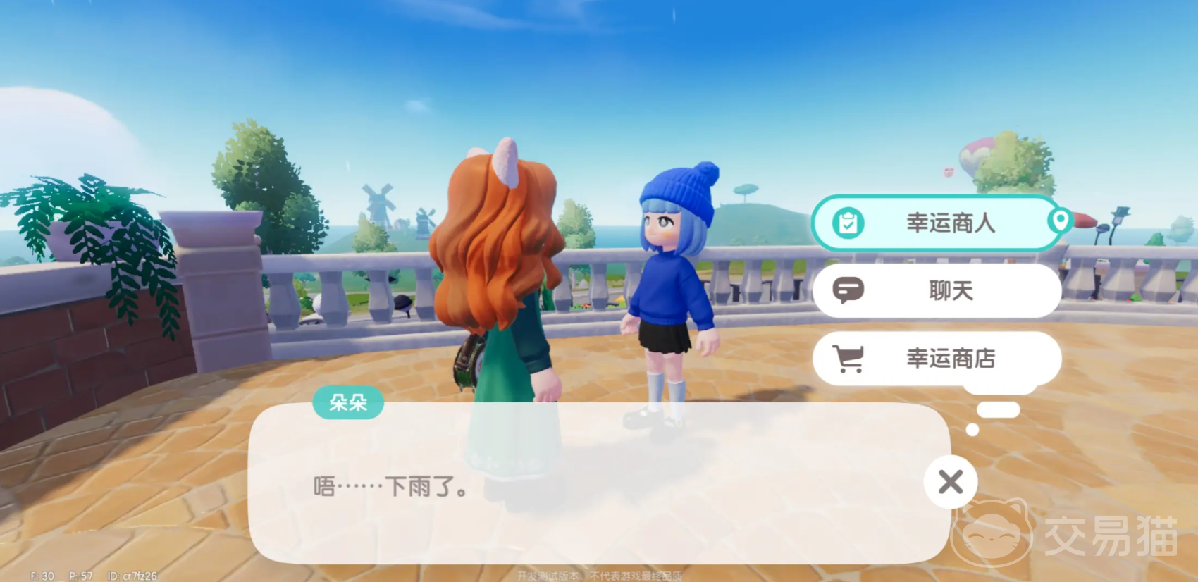 2、在确定了天气之后,玩家便可以从文艺街的钢琴往下走,也就是小镇的左侧,在这里玩家可以发现幸运商人朵朵。