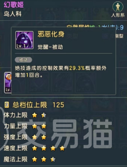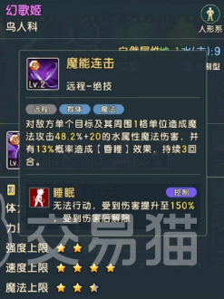 同时,幻歌姬的被动技能“动人身姿”在获得增益效果时,也有一定的机会额外提升敏捷,这使得她在战场上具有较高的出手速度,增加了先手攻击的可能性。而其另一个被动技能“邪恶化身”,虽然效果是当绝技造成昏睡时有机会增加一回合,但实际上这个效果对控制力的提升并不明显,因此相对来说作用有限。