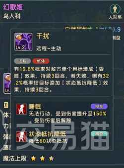 幻歌姬的主动技能“干扰”同样具有使敌人昏睡的能力,如果控制失败,它将有几率降低目标的状态抵抗,提高接下来技能的限制效果。这一特性对于整个队伍的控制能力都有积极影响。