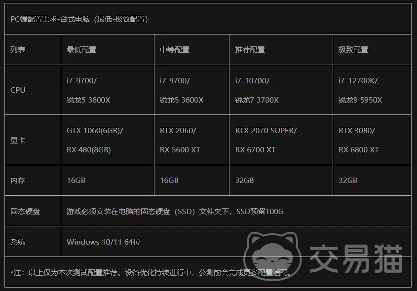 PC端这款游戏需要最少16GB的运行内存,推荐是32GB的运行内存,PC端的运行内存是游戏运行时需要临时存存储的数据,在运行大型的时候就需要更高容量和频率的内存来存储游戏的各种数据,运存越高游戏长时间运行的时候也更稳定。