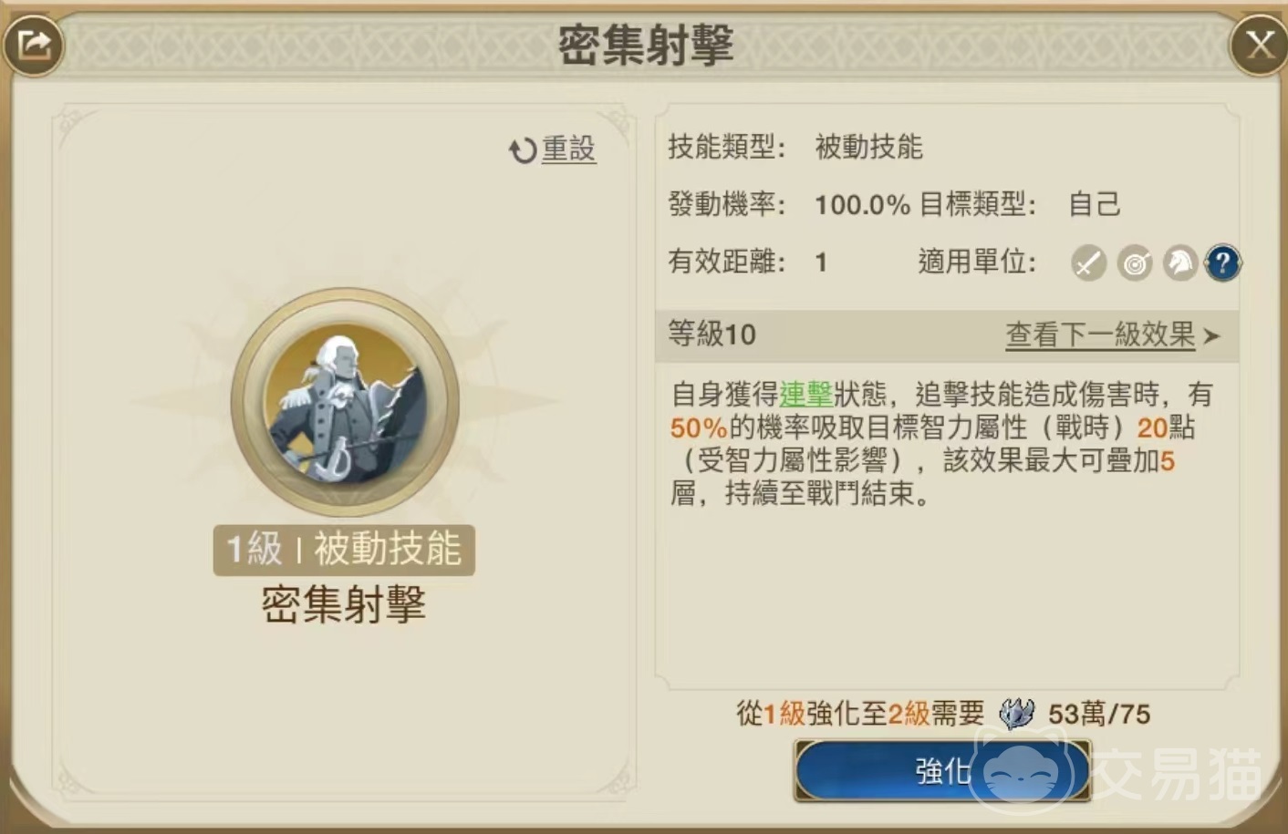 乔治华盛顿目前被称为智力型输出的天花板,初始面板属性为100防御和90敏捷。这样的属性可以保证一定的强度和先手能力,但很多玩家认为它的智力属性只有80多点,并不能称之为天花板,事实上并非如此。华盛顿完全依赖被动技能密集射击来进行伤害输出,自身可以获得连击状态,在使用追击技能造成伤害时,还有几率将目标智力偷取过来,最高能叠加5次。自身智力初始或许不高,但是加上这样的偷取效果后就会非常恐怖了。