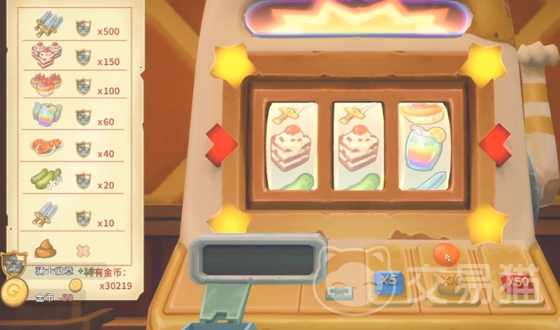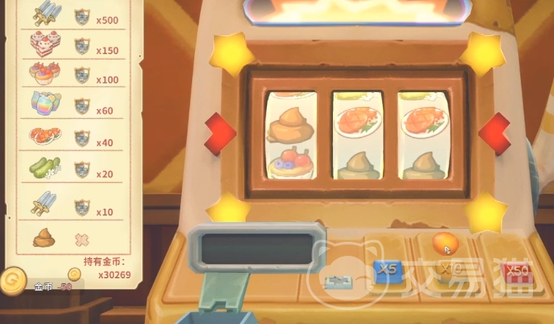 然后就是在其中去选择50金币,直接去点击两次就可以进行选择,这个时候游戏的界面会出现图案,如果是便便或者有两个图案不一样的情况,那么可选择直接就关闭该界面。