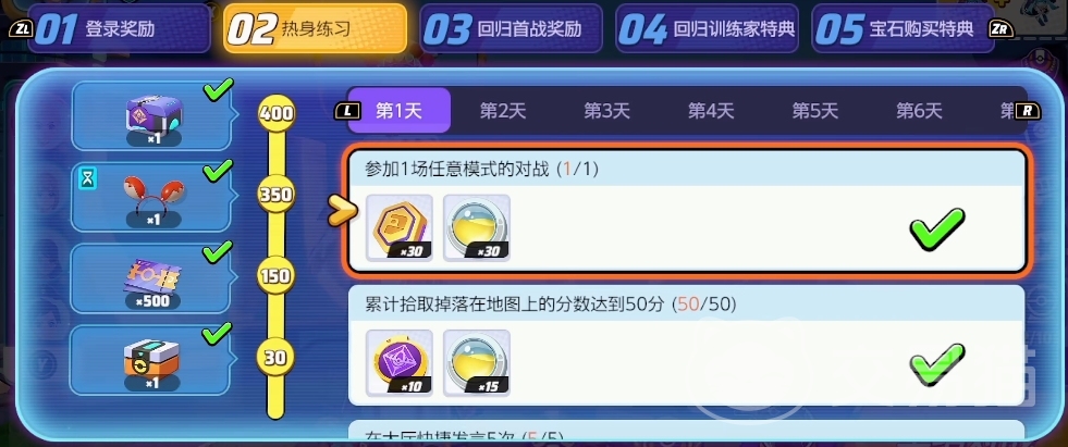 要知道的是在游戏中每日任务成功完成后就能获取大量的活动点数,其中就包括了完成对战、获胜、使用特定的技能等,每天都可提供一定数量的活动点数。