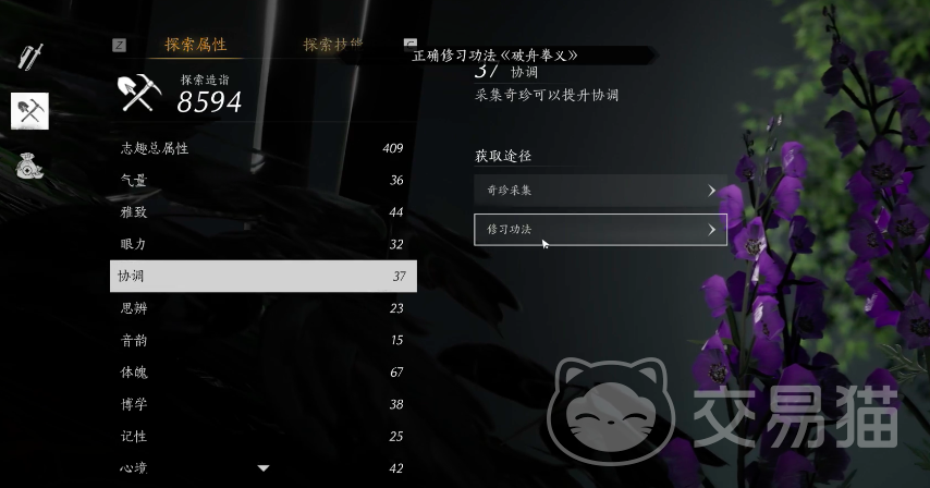 之后玩家的学习方法也非常简单,只需要返回到自己的主界面当中,然后点击角色按钮,进入到属性界面,在右侧寻找到探索属性,单击探索属性当中的协调,玩家就能看到修炼功法的这个按钮,点击修炼功法就可以开始学习破舟拳义,这个操作方法其实还是很简单的,而且在学习该全法之五维属性都可以有不错的提升,游戏当中的外攻攻击值也会不断提升。