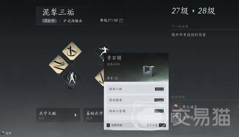 而要想刷出青石锁玩家需要打的小怪有四种,绿林弓箭手,绿林喽啰,绿林小首领,绿林精英,这四个野怪随着其攻打难度的不断升高,玩家刷出清水锁的概率和数量也会节节攀升,所以要想多刷青石锁,可以去刷绿林小首领和绿林精英,当然新手玩家的话去刷绿林弓箭手和绿林喽啰会比较保险,所以在小怪的选择方面,玩家可以看自身的基本能力。