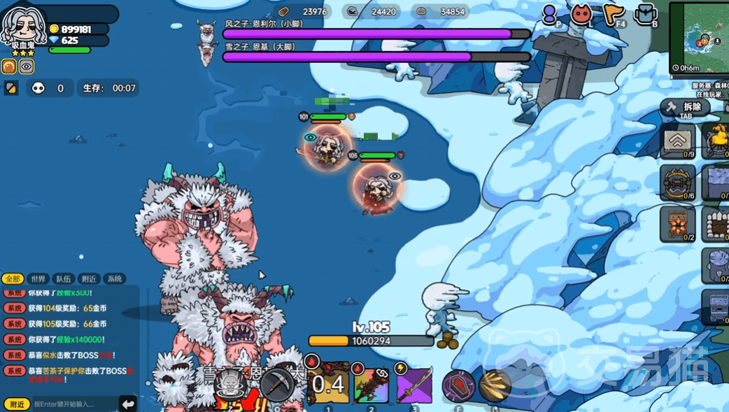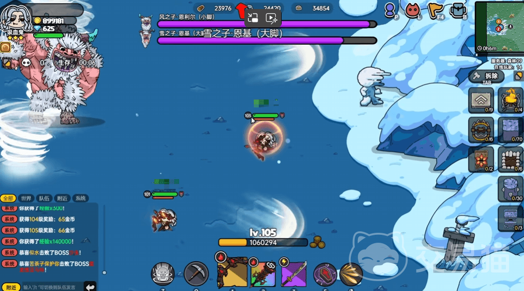 在战斗中,玩家需要密切协作,共同应对BOSS的攻击和技能。大家可以选择小恶魔,炸弹人或者工程师这一类具有远程攻击能力的角色来和雪人双子进行战斗,让在这场战斗当中尽量减少一些由于冰龙卷带来的劣势。