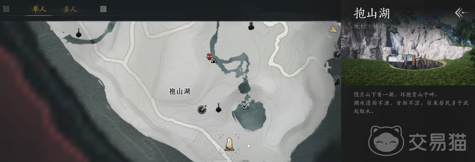首先大家可以打开地图,找到清河隐月山。然后直接传送到抱月湖里面,等待一段时间后即可传送完毕。接着通过轻功即可快速往下走,找到一个叫做亚舟的老船夫。之后再往湖面的小舟走去,然后就可以跳入湖面里。