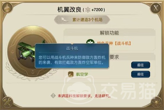 要想打赢空战,首先是在科技方面要有一些专门的提升,需要优先解锁航空学,开启机场的建造,没有机场空中单位自然无法降落和起飞。然后轰炸和机翼改良优,先去选择机翼改良,这两个选项的区别在于解锁的是轰炸机还是战斗机,虽然轰炸机在空中单位中空袭伤害高,但是不能进行警戒。战斗机更加全能一些,既可以空袭又可以警戒。等到解锁这两个兵种后,接下来就是炸药改良和高速拦截这两大类,优先去选择炸药改良,这样空战中的输出会更高。