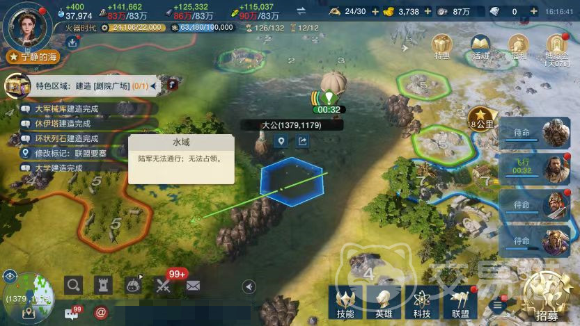 有了科技加持,接下来就是机场修建,在攻打敌对联盟的时候是空战主要战场,所以机场也需要修建在发生战斗的地点,这样才能快速作出反应。需要先计算好要进行空袭目标地点,因为空袭有着距离限制。虽然可以通过一些其他途径提升,但实际情况中依然是以基础为主。不然造好机场后打不到对方是很尴尬的,计算好距离后再计算一下自己警戒位置,机场五格之内一般没有比较重要的建筑,确定好之后就可以建造了。