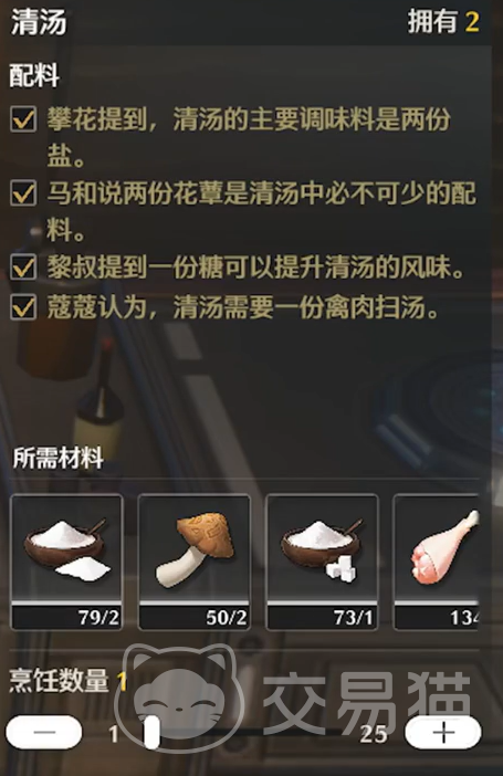 如果你想要见到他,可以通过游戏菜单中的设置调整时间到晚上。一旦到了晚上,你就可以在这里找到他,并与之交谈,完成对话后,选择“美食传闻”选项就可以获取清汤的配方了。请记住,黎叔只在晚上出现,所以务必把握好时间去解锁这一配方。